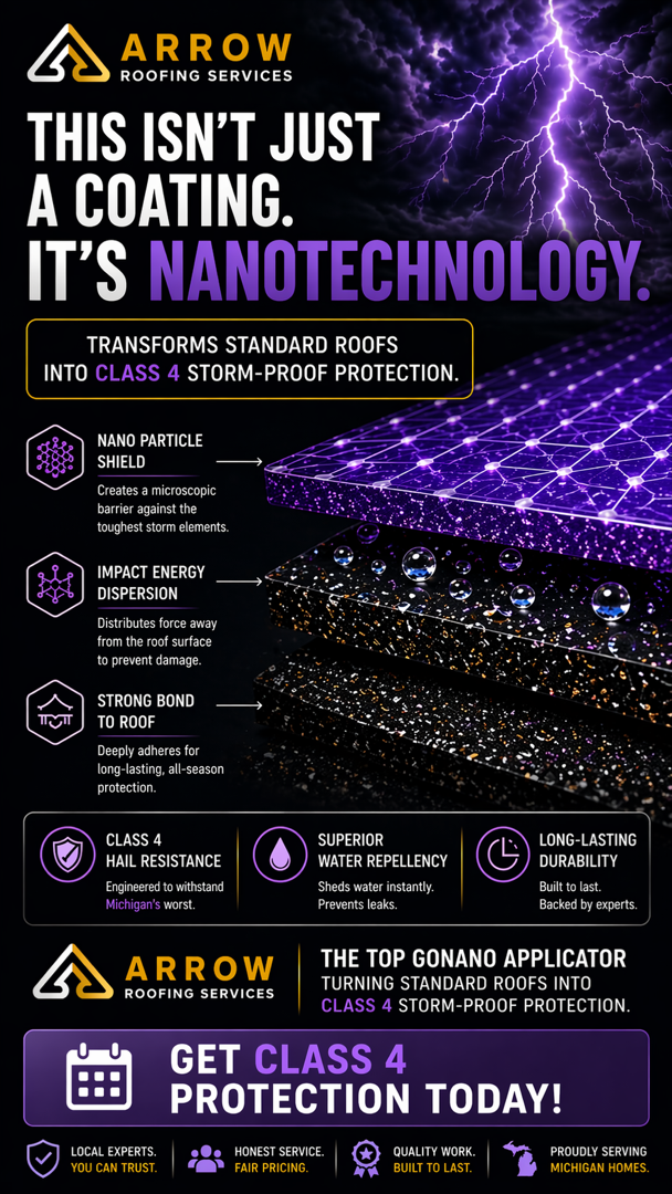 Most roofs do not need to be replaced. GoNano nanotechnology bonds with your shingles, adds 10 to 15 years of life, and protects against Michigan hail and ice. Applied in one day. No tear-off. No mess. Free roof score, no pressure. (734) 636-2251